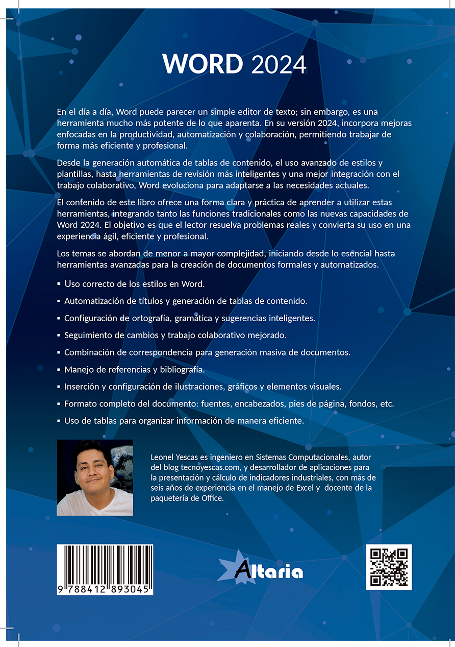 El contenido de este libro ofrece una forma clara y práctica de aprender a utilizar estas herramientas, integrando tanto las funciones tradicionales como las nuevas capacidades de Word 2024. El objetivo es que el lector resuelva problemas reales y convierta su uso en una experiencia ágil, eficiente y profesional.